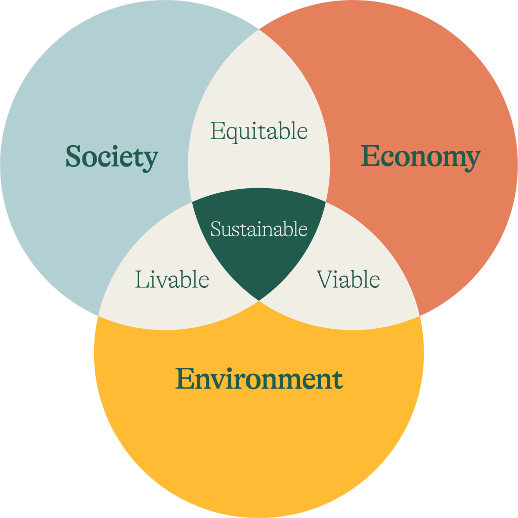 To improve your practices, keep in mind that sustainable development depends on the balance between three pillars: